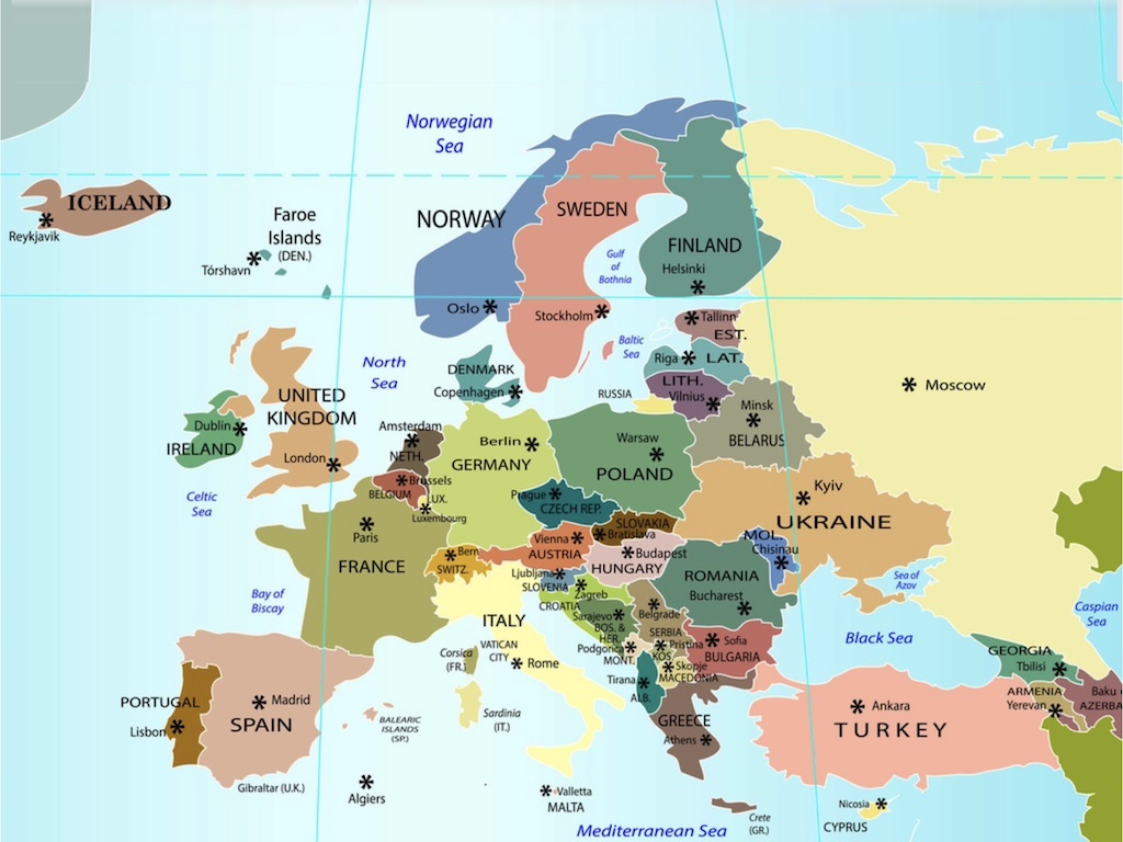 Albania Armenia Austria Azerbaijan Belarus Belgium Bos and Her Bulgaria Croatia Cyprus Czech Republic Denmark Estonia Denmark Finland France Georgia Germany Greece Hungray Iceland Ireland Italy Kosovo Latvia Lithuania Luxembourg North Macedonia Malta Moldova Montenegro Netherlands Norway Poland Portugal Romania Russia Serbia Slovakia Slovenia Spain Sweden Switzerland Turkey Turkey UK Ukraine